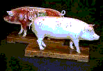 pig accuptuer modle $28.00 cow accupture modle $28.00 Mounted on a 3"x8" woodstand.one side shows acupuncture points numbered. The other side shows the muscle,internal tissure.A point location booklet is included. |