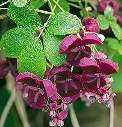 DESCRIPTION: A vigorous twining vine with dense foliage. Climbs trees readily, but can also be used as a ground cover. Compound, leathery leaves are unusual in appearance. Evergreen in mild climates. Tolerant of partial shade. The clusters of fragrant, lilac-purple flowers appear in May. Fruit is a 2-7" long pod which turns purple and splits open when ripe in September or October. Inside is a core of edible white pulp which tastes somewhat like tapioca pudding with seeds. In order to obtain fruit it is necessary to plant two or more vines. Hand cross-pollination will likely result in heaviest fruit production (much fruit can be set as a result of a few minutes of hand-pollination). The vines in our planting,, which are about 15' apart, usually set fairly good crops of fruit without hand-pollination.\