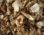 DESCRIPTION: Irregularly oblate, mostly with 2~3 claw-like branches, 1.5~5 cm long, 0.5~1.5cm thick. Externally grayish-white or yellowish-white, possessing several concentric rings and brown dotted rootlet scars. Texture is hard and tough, when fractured, becomes white and jagged. Odorless, viscous upon chewing.